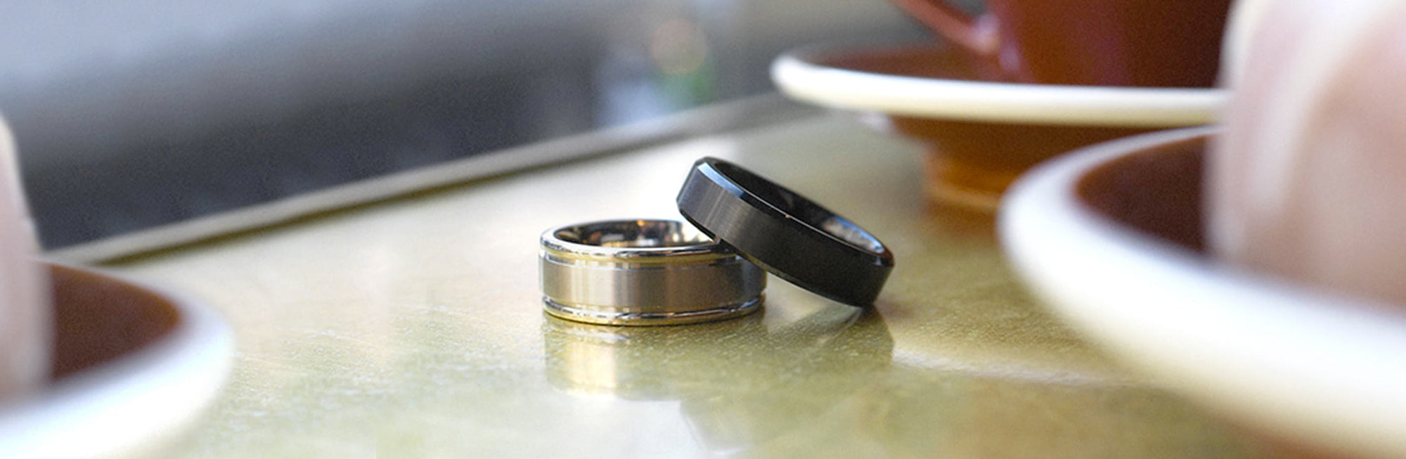 For the classic look of a white gold or platinum ring, thisCobalt Band with Satin Finish Centeris a timeless choice. And for men searching for the perfect black wedding band, the answer can be found in ourCobalt Black Etched V Design Band.